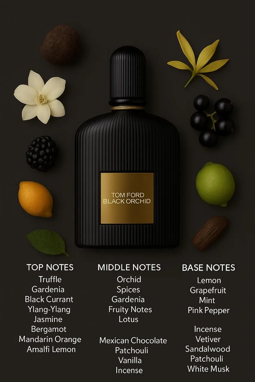 بلاك أوركيد من توم فورد ✨ عطر فاخر يجمع بين الغموض والفخامة. يفتتح بنفحات الكمأة السوداء والكشمش مع لمسة من البرغموت، ثم يكشف عن قلب زهرة الأوركيد السوداء المميزة الممزوجة بالتوابل والفواكه. أما القاعدة فتمنحك عمقًا وسحرًا بفضل الباتشولي والعنبر والفانيليا. 🔹 عطر جريء وغامض يدوم طويلاً 🔹 مثالي للسهرات والمناسبات